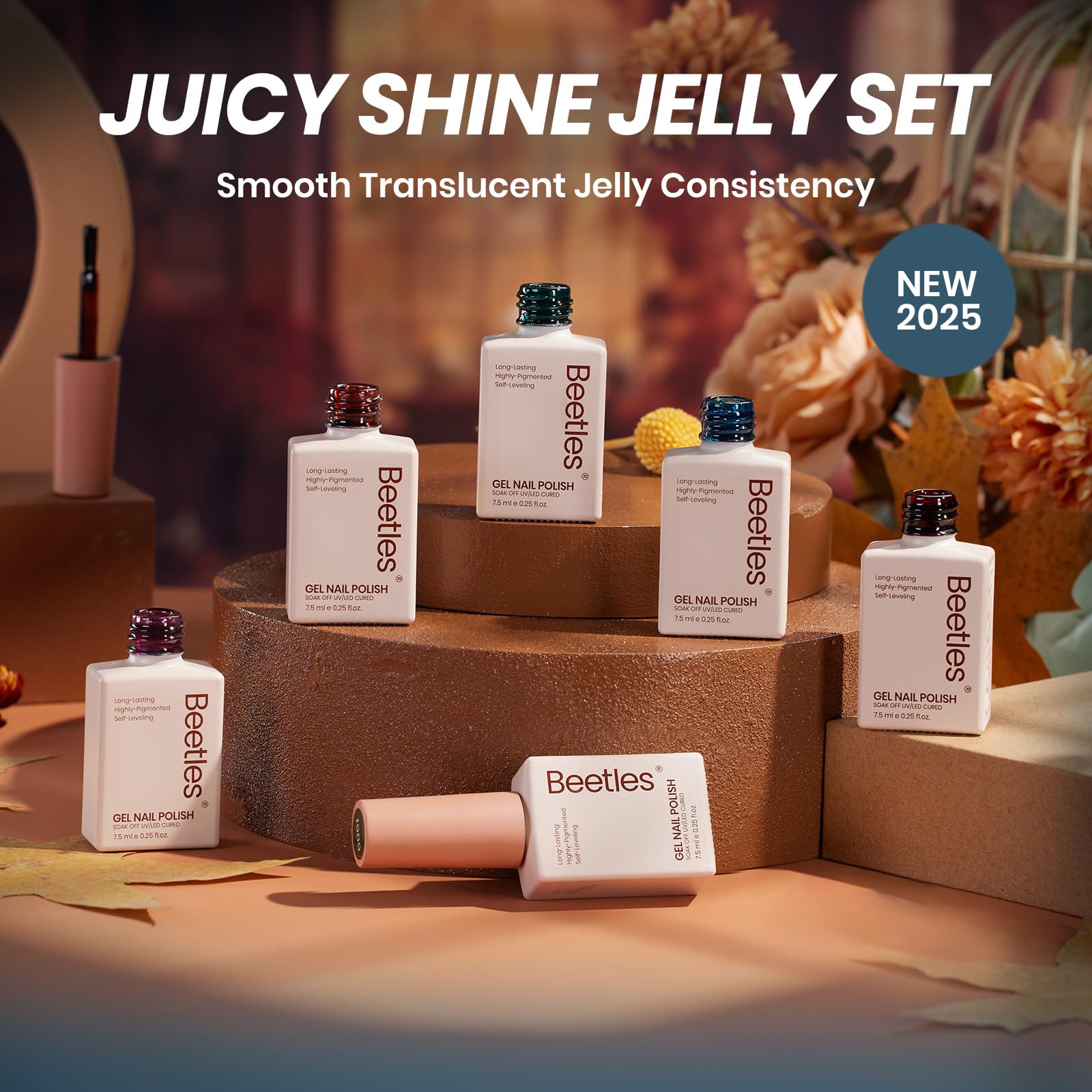 Beetles Jelly Gel Nail Polish Set - 6 Colors Mocha Brown Burgundy Red Purple Green Blue Fall Gel Polish Kit