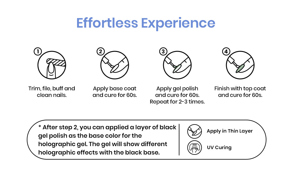 Beetles Holographic Silver Glitter Gel Polish: It is highly pigmented,only apply 2 coats can come out super shiny effect.Apply gel top coat for gorgeous shimmery and sparkly finish. Not only suitable for daily life but also for various parties.