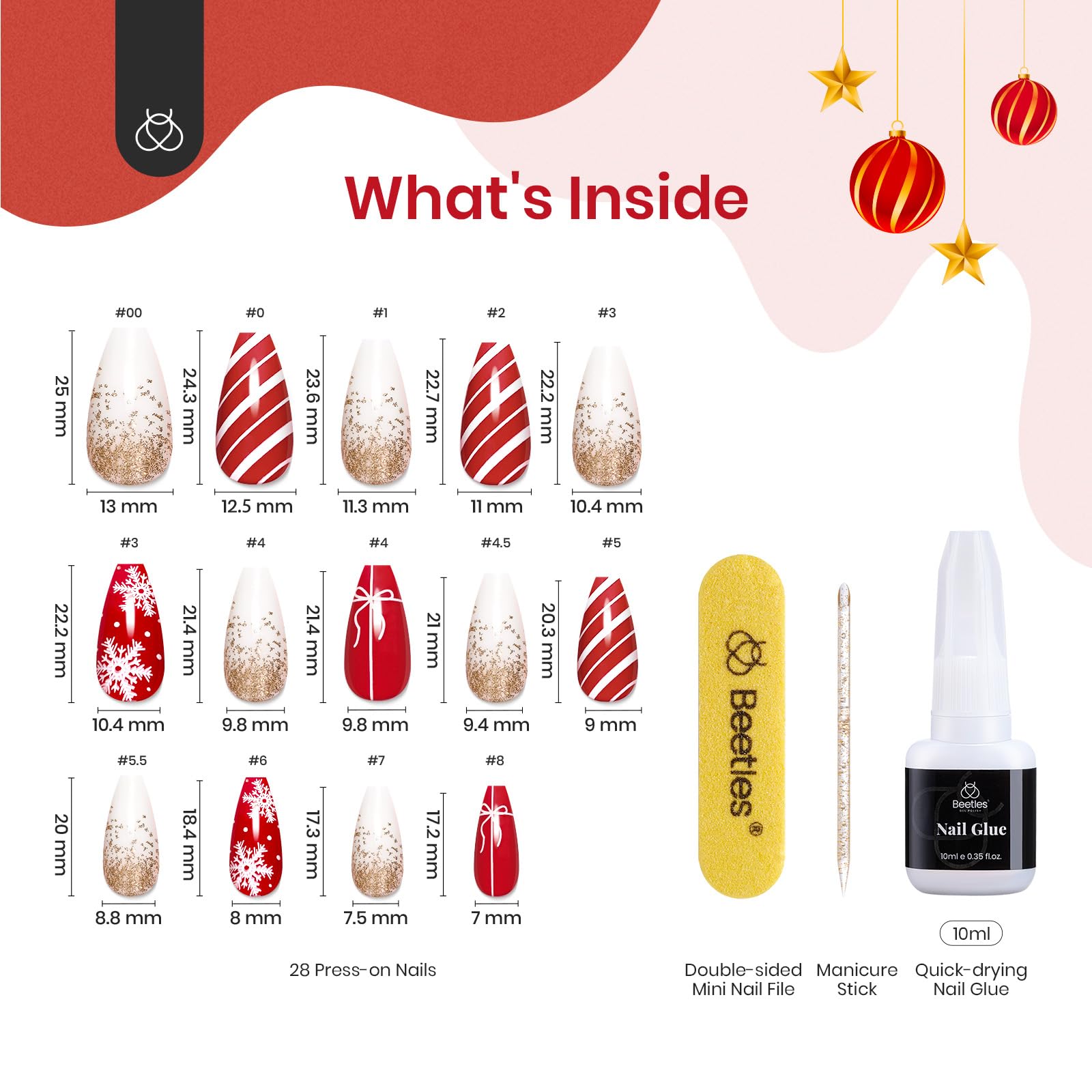 Beetles Press On Nails Medium - Supremely Fit & Natural Soft Gel Press on Nails Christmas Nails