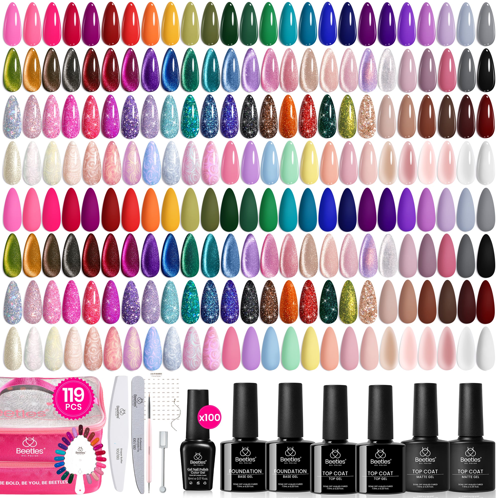 (Extra Free £20 Mystery Gift ) 100 Colors Hema Free Spring Nails 119PCS with Storage Bag Perfect Gift Gel Polish Set for All Season