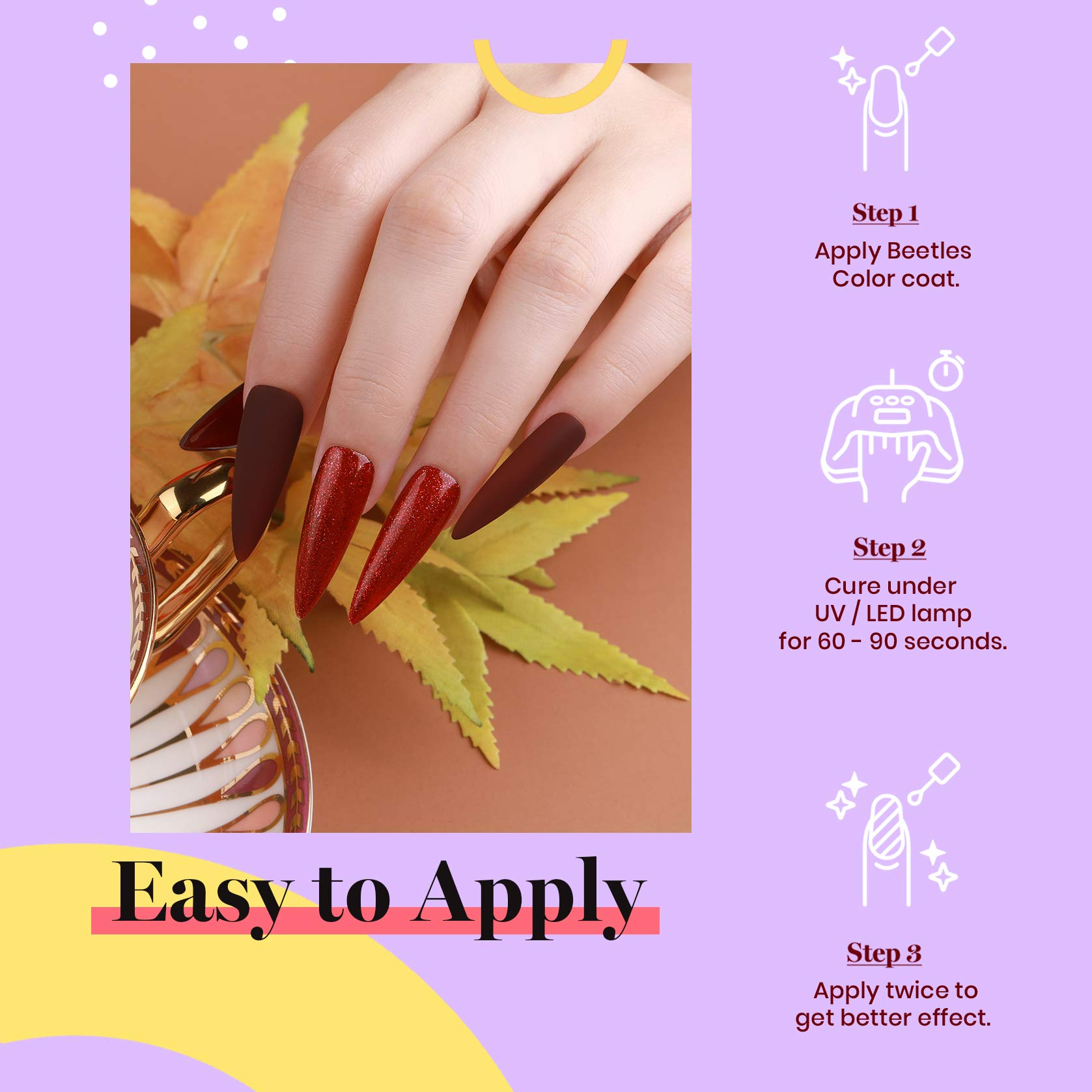 "The formula of beetles gel nail polish adapts 9 toxin-free ingredients, no harm to your nails. A budget friendly option for gel polish that still can provide beginner and manicurist with vibrant pigmentslong-lasting wear and high-gloss shine over time."💅💅💅