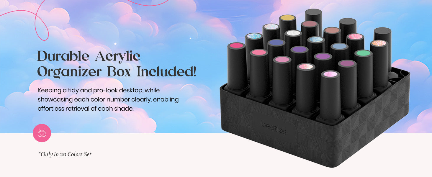 • What you get: Beetles 2024 nails trend color 20 Gorgeous shades of Spring Gel Nail Polish Kit. 20 X Mini Gel Colors (5ml/each bottle) + 3 x No Wipe Base and Glossy & Matte Top Coat ( 7.5ml/ each bottle). It is recommended to use basic gel finish paint in the whole application process. For optimal results, we strongly recommend using UV LED lights to cure for 60-120s.