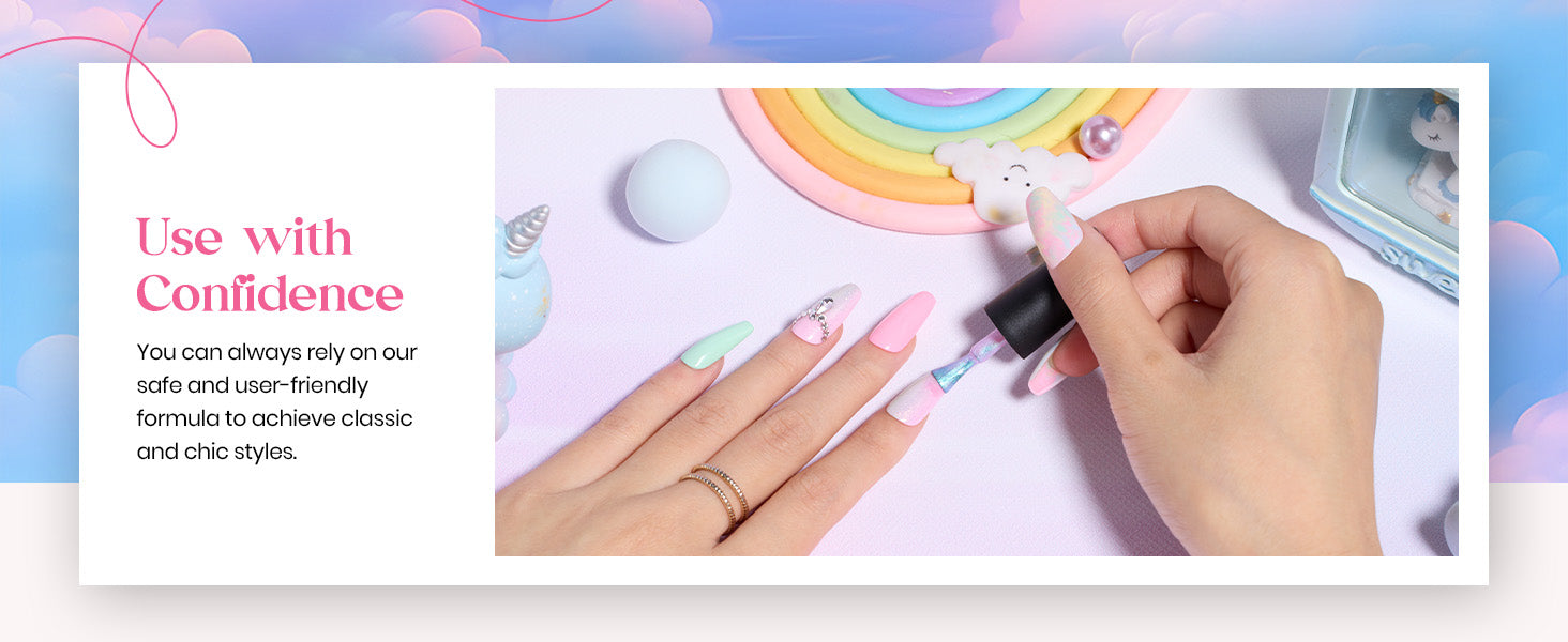 • Durable and long-lasting: When used correctly, our gel polish can provide approximately 28 days of lasting effect. It strengthens and protects your nails while providing a hard, resistant surface that is less prone to breakage. Additionally, it has excellent flexibility and adhesion, making application easier and more effective. Furthermore, its smoothness allows for easy application and convenient removal, ensuring the convenience and comfort of using our gel polish.